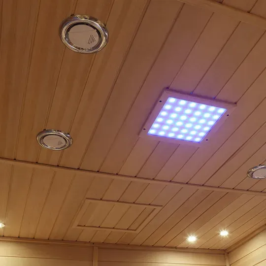 3. تجربه گرمایش و روشنایی: پانل های گرمایش مادون قرمز دور به طور یکنواخت، گرمای ملایم و نافذ را ارائه می دهند. نورهای محیطی بالا و کناری (با رنگ های گرم) آرامش را افزایش می دهند و از گرفتگی یا سرکوب جلوگیری می کنند