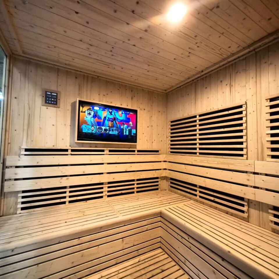 - سرگرمی و آرامش: از فیلمها، برنامههای تلویزیونی یا موسیقی مورد علاقهتان در حالی که عرق میکنید لذت ببرید و جلسه سلامتی را لذتبخشتر و طولانیتر کنید.