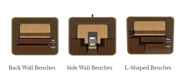 طراحی شده با فضای داخلی باز به طور خاص برای استفاده گروهی، از سه گزینه چیدمان صندلی پشتیبانی می‌کند: دیوار عقب، دیوار جانبی و L شکل. با اندازه‌های گروهی و عادات استفاده متفاوت سازگار می‌شود (به راحتی می‌توان در جمع‌های خانوادگی یا گردهمایی‌های دوستانه شرکت کرد). صندلی‌ها ساختار توخالی لایه‌ای دارند که راحتی برای نشستن و دراز کشیدن را تضمین می‌کند و در عین حال گردش هوای داخلی را تسهیل می‌کند و باعث می‌شود سونا در محیط‌های با دمای بالا تنفس و گرفتگی کمتری داشته باشد.